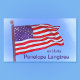 Image of Old Glory, flag of the USA, flying free in a blue sky, with Latin words "ex libris" (from the library) and the owner's name you enter.