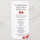 Des fleurs de plumeria rose sur de grands programmes de mariage blanc. Les programmes de cérémonie en noir et blanc, abordables, sont décorés de fleurs de plumeria hawaïenne.