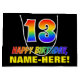 Ce modèle de sac-cadeau d'anniversaire amusant, coloré et gai comporte un grand nombre de "13" et le message "HAPPY BANTHDAY", tous deux colorés avec un motif inspiré par un gradient de spectre arc-en-ciel, ainsi qu'un nom de destinataire modifiable jaune gras. Le arrière - plan est noir de couleur. Un sac-cadeau amusant à thème d'anniversaire comme celui-ci peut être utilisé pour envelopper un cadeau ou un cadeau donné à quelqu'un qui célèbre son treizième anniversaire. [~Z0000477]