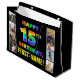 Ce modèle de sac cadeau d'anniversaire attrayant et amusant comporte le message "HAPPY 15TH BANTHDAY", avec un motif multicolore inspiré du spectre arc-en-ciel, ainsi qu'un nom de destinataire modifiable. À gauche et à droite du message à motif arc-en-ciel sur le devant se trouvent des photos qui peuvent être personnalisées, peut-être avec des photos du destinataire, de la famille et des amis du destinataire et/ou de l’expéditeur du cadeau. Un sac cadeau d’anniversaire amusant comme celui-ci pourrait être une façon amusante d’envelopper un cadeau pour célébrer le quinzième anniversaire de quelqu’un. (Photographie © Storytree Studios, Stanford, CA.) [~Z0000668]