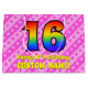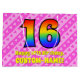 Ce modèle de sac cadeau amusant et heureux à 16e anniversaire a un grand nombre de "16" avec un motif dégradé inspiré du spectre arc-en-ciel. Il comporte également le message "Joyeux 16e anniversaire", et un nom personnalisé. L'arrière - plan est doté d'un motif à rayures rose foncé et rose clair, aux coeurs roses aimés. Un sac cadeau comme celui-ci peut être utilisé pour envelopper des cadeaux ou des cadeaux donnés en l’honneur du seizième anniversaire de quelqu’un. [~Z0000414]