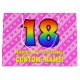 Ce modèle de sac cadeau de 18e anniversaire heureux et optimisé comporte un grand nombre de "18" ayant un motif dégradé inspiré du spectre arc-en-ciel. Il comporte également le message "Joyeux 18ème anniversaire", suivi d'un nom modifiable. L'arrière - plan est doté d'un motif à rayures rose foncé et rose clair, aux coeurs roses aimés. Un sac cadeau comme celui-ci peut être utilisé pour envelopper des cadeaux ou des cadeaux donnés pour célébrer le dix-huitième anniversaire de quelqu’un. [~Z0000414]