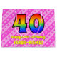 Ce modèle de sac cadeau amusant et festif de 40e anniversaire a un grand nombre de "40" ayant un motif inspiré par l'apparence d'un arc-en-ciel spectre. Il comporte également le message "Joyeux 40e anniversaire", suivi d'un nom personnalisé. L'arrière - plan est doté d'un motif amusant de rayures rose foncé et rose clair, aux coeurs roses aimés. Un sac cadeau comme celui-ci peut être utilisé pour envelopper des cadeaux ou des cadeaux donnés en l’honneur du quarantième anniversaire de quelqu’un. [~Z0000414]