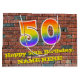 Ce design de sac cadeau coloré et dynamique, inspiré de l'art urbain, est doté d'un grand nombre de "50" avec un motif inspiré par un dégradé du arc-en-ciel. Il comporte également le message "Joyeux 50e anniversaire", et un nom modifiable. Il dispose également d'un arrière - plan motif de style brique. Un giftbag à thème d’anniversaire comme celui-ci pourrait être une façon amusante d’envelopper un cadeau ou un cadeau pour célébrer le cinquantième anniversaire de quelqu’un. [~Z0000522]