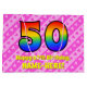 Ce design amusant et optimisé de sac cadeau à thème de 50e anniversaire comprend un grand nombre de "50" ayant un motif inspiré par l'apparence d'un arc-en-ciel spectre. Il comporte également le message "Joyeux 50e anniversaire", et un nom modifiable. L'arrière - plan est doté d'un motif à rayures rose foncé et rose clair, aux coeurs roses aimés. Des sacs-cadeaux comme celui-ci pourraient être utilisés pour envelopper des cadeaux ou des cadeaux donnés à quelqu'un qui célèbre son cinquantième anniversaire. [~Z0000414]