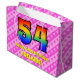 Ce joyeux et festif 54ème anniversaire de conception de sac cadeau à thème dispose d'un grand nombre "54" avec un motif dégradé inspiré du spectre arc-en-ciel. Il comporte également le message "Joyeux 54ème anniversaire", suivi d'un nom modifiable. L'arrière - plan est décoré d'un joyeux motif de rayures rose foncé et rose clair, aux coeurs roses aimés. Un sac cadeau comme celui-ci peut être utilisé pour envelopper des cadeaux ou des cadeaux donnés pour célébrer le cinquante-quatrième anniversaire de quelqu’un. [~Z0000414]