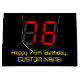 Ce sac cadeau d'anniversaire geeky et nerdy a un grand nombre de "76" avec un affichage numérique à sept segments rouge inspiré, avec le message "Happy 76th Birthday," et un nom personnalisé dans le texte jaune d'inspiration informatique geeky, sur un arrière - plan de couleur noire. Des sacs-cadeaux modifiables comme celui-ci peuvent être utilisés pour envelopper des cadeaux ou des cadeaux donnés pour célébrer le soixante-seizième anniversaire de quelqu’un. [~Z0000389]