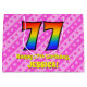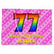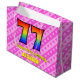 Cette conception amusante et optimisée de sac cadeau 77e anniversaire a un grand nombre de "77" avec un motif dégradé inspiré du spectre arc-en-ciel. Il comporte également le message "Joyeux 77ème anniversaire", et un nom modifiable. L'arrière - plan est décoré d'un joyeux motif aux rayures rose clair et rose foncé, aux coeurs roses aimés. Un sac cadeau comme celui-ci peut être utilisé pour envelopper des cadeaux ou des cadeaux en l’honneur du soixante-dix-septième anniversaire de quelqu’un. [~Z0000414]