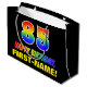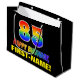 Ce sac cadeau d'anniversaire joyeux, coloré et amusant est doté d'un grand nombre de "85" et du message "HAPPY BANTHDAY", tous deux colorés avec un motif inspiré par un gradient de spectre arc-en-ciel, ainsi que d'un nom de destinataire personnalisé jaune gras. L'arrière - plan est noir de couleur. Un sac cadeau d’anniversaire amusant comme celui-ci pourrait servir à envelopper un cadeau ou un cadeau pour célébrer le 85e anniversaire de quelqu’un. [~Z0000477]