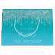 Pour un 16, 16e anniversaire Sweet (ou tout âge). Un arrière - plan turquoise, bleu vert dégradé décoré avec des gouttes de parties scintillant faux, la peinture goutte à goutte. Personnalisez et ajoutez une date, un nom et un âge. Un script de style moderne, en lettres blanches.