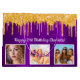 Pour un 21e anniversaire (ou tout âge). Un élégant arrière - plan à l'allure métallique violet. Avec des gouttes de parties scintillant en faux or, la peinture goutte à goutte. Personnalisez et ajoutez 3 de vos propres photos, une date, un nom et 50 ans. Le nom est écrit avec un script de style moderne écrit à la main.