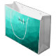 Grand Sac Cadeau Aqua Turquoise Gradient Monogramme de maillage géo