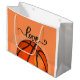 Grand Sac Cadeau Basket-ball sur orange avec amour aquarelle