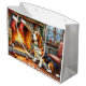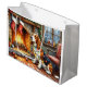 Grand Sac Cadeau Basset Hound Fireplace with Christmas Lights