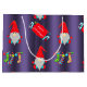 Ce mignon sac cadeau de Noël bleu a un motif de petits elfes de Noël (ou aides Père Noël) avec des casquettes rouges, pointus et de longues barbes pointues. Tout autour sont des petits sucres de canne, de jolies pancartes de Noël et des bas de Noël rayés multicolores.