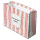 Sac cadeau avec un élégant motif. Dotée de rayures rose vif et de parties scintillant de confettis en faux or éparpillés un peu partout. Un carré blanc avec une fausse bordure en feuille d'or superposée, avec votre texte personnalisé à l'intérieur.