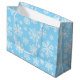 Grand Sac Cadeau Blue Winter Snowflakes Motif de Noël