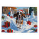 Un joyeux Bluetick Coonhound traverse la neige fraîche de l'hiver, portant joyeusement un casquette de Noël rouge festif. Cette scène saisonnière capte l'esprit des fêtes avec l'énergie et le charme d'une pièce bien-aimée dans un paysage enneigé. Parfait pour ajouter une touche de chaleur et de gaieté de vacances à la saison, ce design célèbre à la fois la beauté de l'hiver et l'amour des chiens.