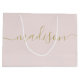 Grand Sac Cadeau Blush Rose Script Doré Féminin Chic et Girly