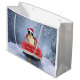 Grand Sac Cadeau Bordure Collie Chien dans Neige assis à Noël