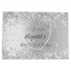 Un sac-cadeau pour une fête de mariage glamour et féminin. Un fond argenté décoré de confettis argentés et de paillettes. Personnalisez et ajoutez une date, un nom. Le nom est écrit avec un style de lettrage moderne à la main.