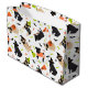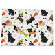 De mignons carlins en costumes d'Halloween et de tromper-ou-traiter avec des empreintes de pattes, chauves-souris et os de chien sur arrière - plan blanc.