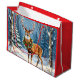 Grand Sac Cadeau Cerf de Noël en forêt d'hiver festive