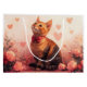 Grand Sac Cadeau Chat abyssinien avec Rose - Saint Valentin
