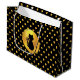 Beau sac cadeau avec un chat noir et des pois dorés sur arrière - plan noir.