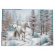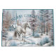 Scène hivernale de forêt neigeuse avec un cheval blanc (gris) design de Noël personnalisé pour les amateurs de cheval.
