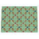 Un mignon dachshund rouge style dessin animé à l'expression amicale se dresse contre un arrière - plan de vert avec un empreinte de patte bleu centré entre quatre copies de l'image du chien. L'arrière - plan est parsemé de plus d'empreintes de pattes et d'os de jouets. Ce motif est carrelé de sorte qu'il se transfère facilement vers d'autres types de produits.