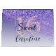 Une élégante parties scintillant violette tombant sur le côté d'un arrière - plan à dégradé violet. Au centre, il y a un numéro de parties scintillant unique 16 correspondant au style du sac cadeau. Contactez-moi si vous avez besoin d'aide pour la conception, ajouter quelque chose ou modifier/supprimer le numéro ou autre chose.