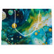 Grand Sac Cadeau Cosmos d'encre d'alcool bleu vert or