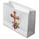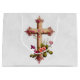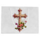 Grand Sac Cadeau Croix en bois élégante aux fleurs roses