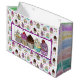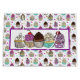 Cupcakes mignons roses et violets dessinés à la main, cupcakes fantaisistes au chocolat, fraise, vanille et cerise et sac cadeau à pois pour anniversaire, shower de bébé ou mariage.
