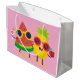 Un sac cadeau amusant et coloré rose et jaune pour un cadeau à jumeaux! Idéal pour un baby shower d'été ou une fête d'anniversaire avec jumeaux. La pastèque et l'ananas s'amusent au soleil !