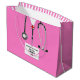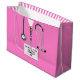 Sac-cadeau pour diplômé d'une école de médecine créative pour médecin diplômé avec gommages d'hôpital rose et stéthoscope. Modifier le texte pour ajouter le nom du médecin, de l'adjoint médical ou de l'infirmier et les titres de compétence en médecine.