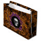 Ce design éffrayant mais élégant présente un crâne effrayant, encerclé de noir et entouré d'un cadre violet et orange. Des roses damassés, feuille et noirs en dentelle ornent l'arrière - plan. L'ambiance est soignée mais frappe définitivement une ambiance gothique ou haloween.