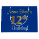 Grand Sac Cadeau Elégant, Bleu, Faux Or 12ème Anniversaire + Nom