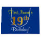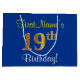 Grand Sac Cadeau Elégant, Bleu, Faux Or 19ème Anniversaire + Nom