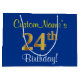 Grand Sac Cadeau Elégant, Bleu, Faux Or 24ème Anniversaire + Nom
