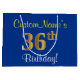 Grand Sac Cadeau Elégant, Bleu, Faux Or 36ème Anniversaire + Nom