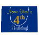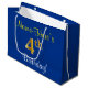 Grand Sac Cadeau Elégant, Bleu, Faux Or 4ème Anniversaire; Nom pers