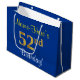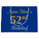 Grand Sac Cadeau Elégant, Bleu, Faux Or 52ème Anniversaire + Nom