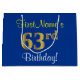 Grand Sac Cadeau Elégant, Bleu, Faux Or 63ème Anniversaire + Nom