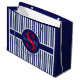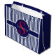Grand Sac Cadeau Élégant bleu marine rouge rayé monogramme initial