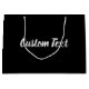 Un élégant script blanc apparaît des deux côtés de ce sac cadeau noir. Vous pouvez modifier le texte d'affichage si vous le souhaitez (illustré : Texte personnalisé).