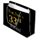 Grand Sac Cadeau Elégant, Noir, Faux Or 33ème Anniversaire + Nom