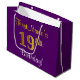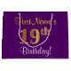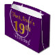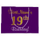 Grand Sac Cadeau Elégant, pourpre, Faux Gold 19e anniversaire + Nom