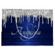 Sacoche d'anniversaire chic moderne pour une fille d'anniversaire spéciale. Parfait pour Sweet 16, 21ème anniversaire, 40 et fabuleux et plus ! Ce design est composé d'un arrière - plan bleu métallique, d'une texture argentée brillante de parties scintillant et d'un script de calligraphie. Personnalisez avec un nom et votre message.